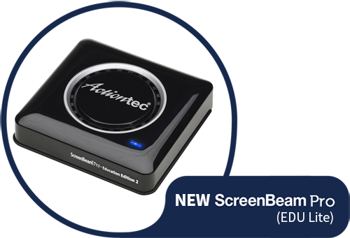NEW ScreenBeam Pro(EDU Lite)為針對Wi-Fi Miracast標準認證所設計,可將相容設備的畫面輕鬆以無線方式輸出到HD電視或投影機,無需連接線或使用現有的網路。可相容的Miracast 無線顯示設備包含Samsung、HTC、LG、Microsoft 和Sony 等知名公司的智慧型手機及平板電腦(不支援iOS系統)。